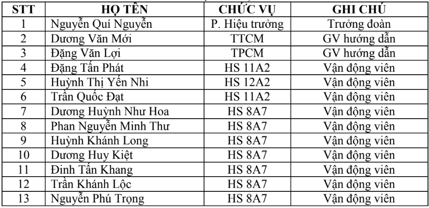Danh sách đoàn tham gia cuộc thi