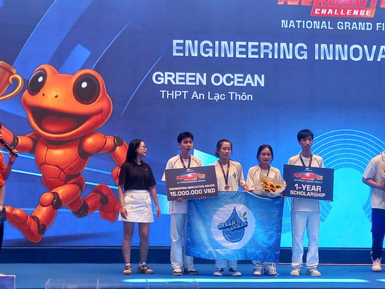Đội Green Ocean đến từ Trường THPT An Lạc Thôn, tỉnh Cần Thơ đã vinh dự giành Giải Sáng tạo Kỹ thuật (Creative Technical Design Award) – một trong 8 giải phụ danh giá do Ban tổ chức trao tặng và bộ kit Robot FTC để thi First Tech Challenge Vietnam 2026.