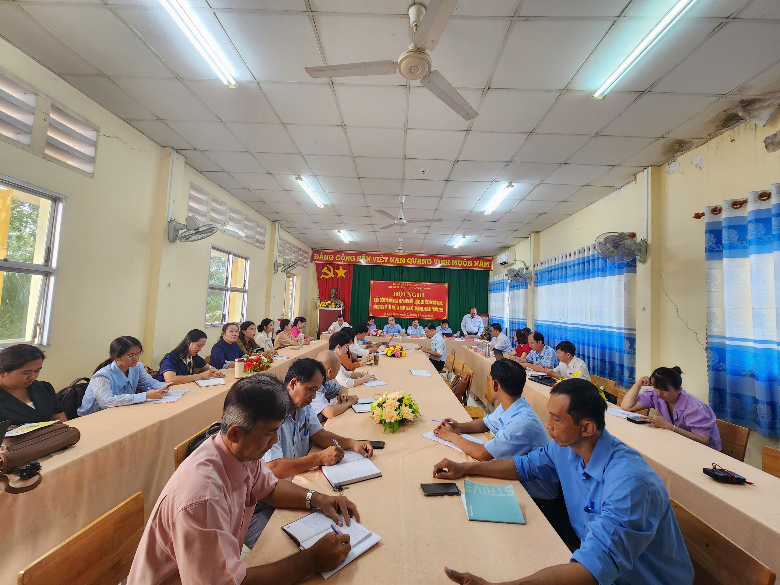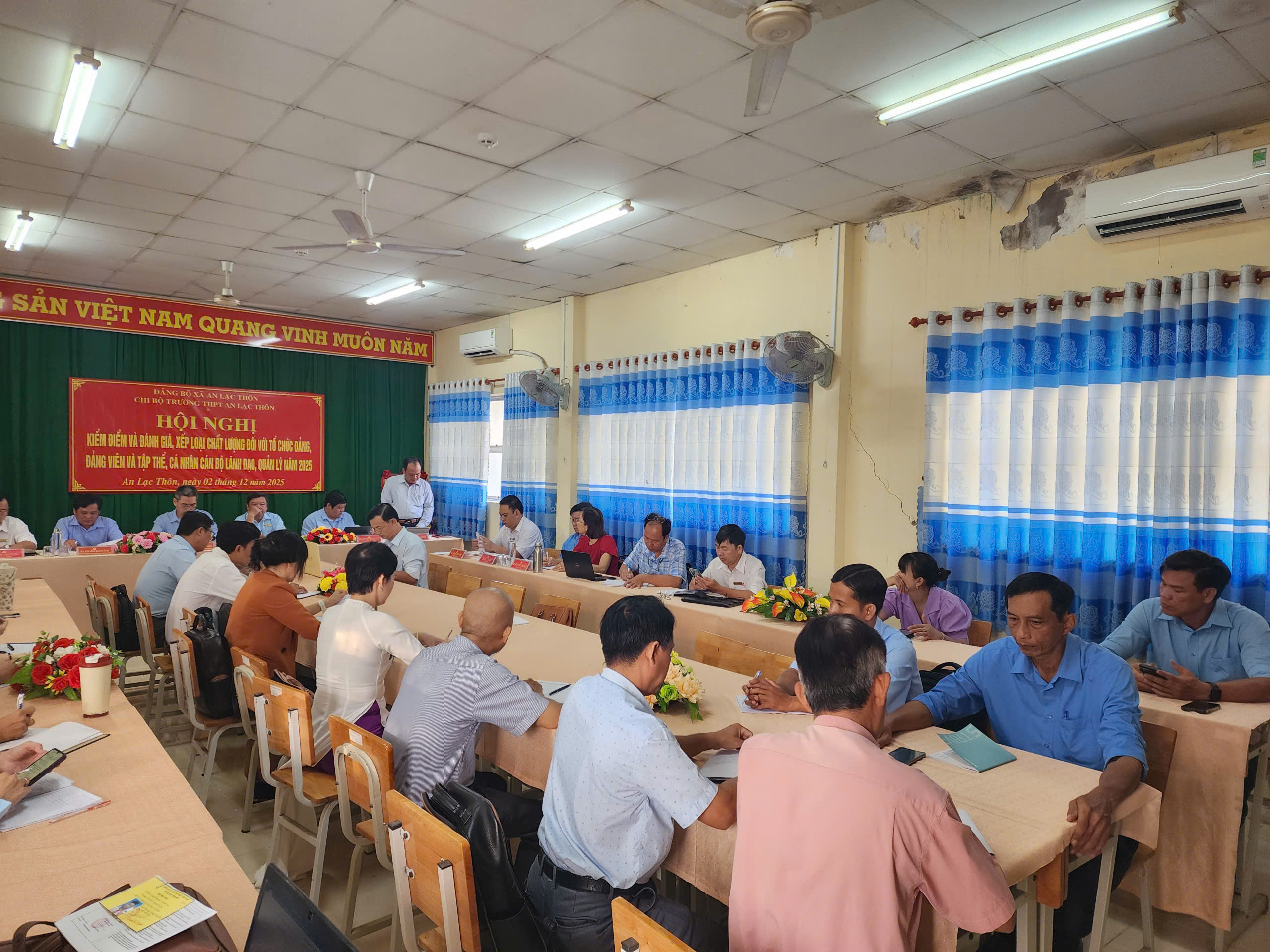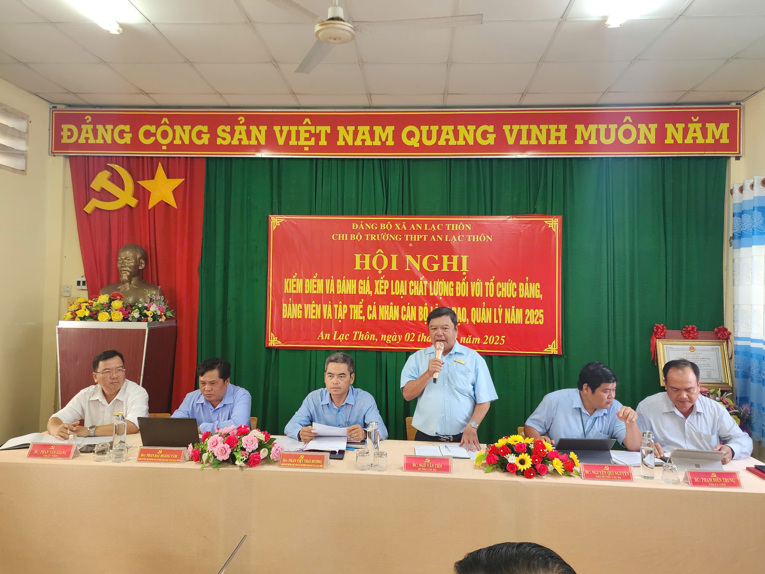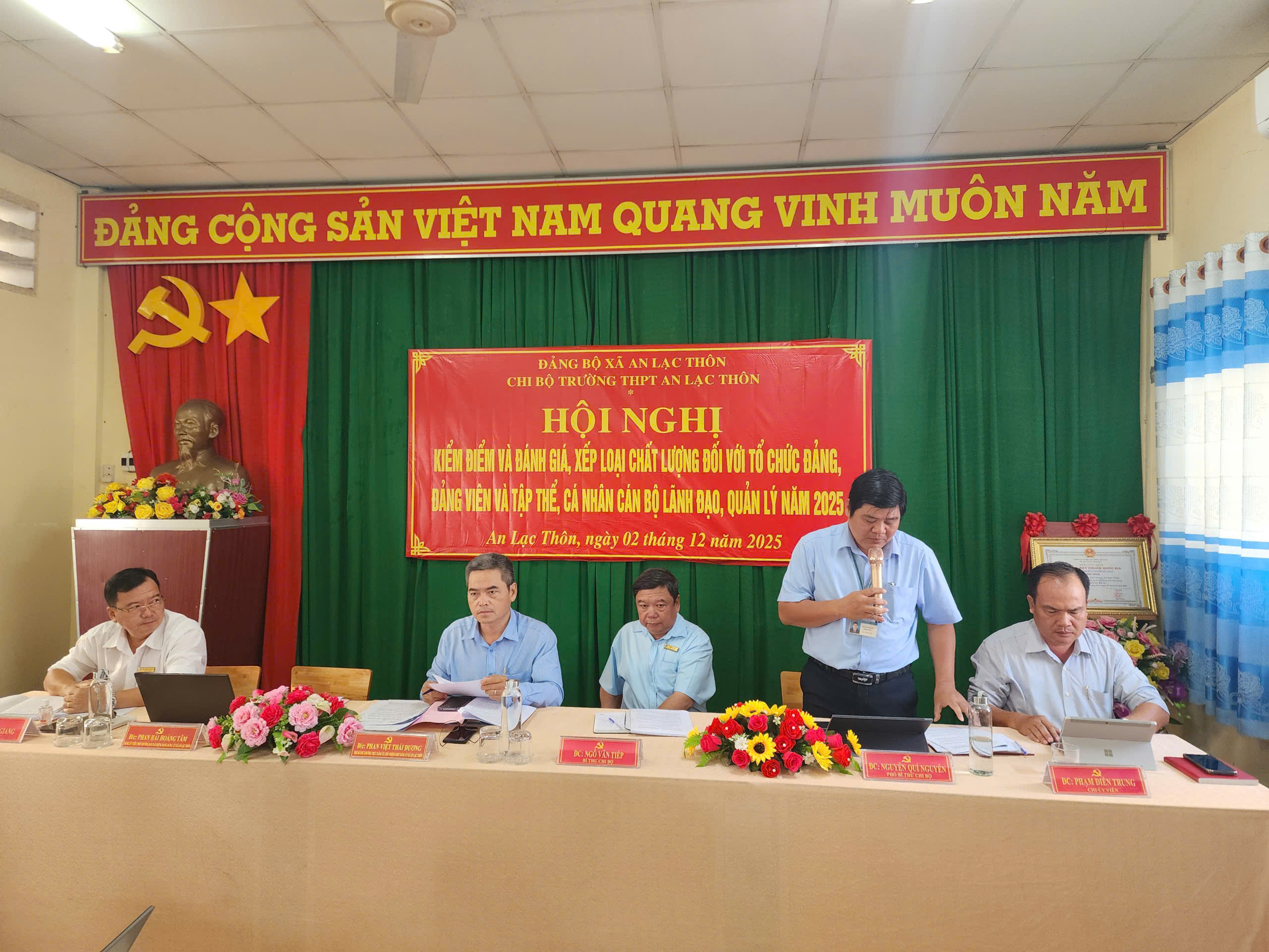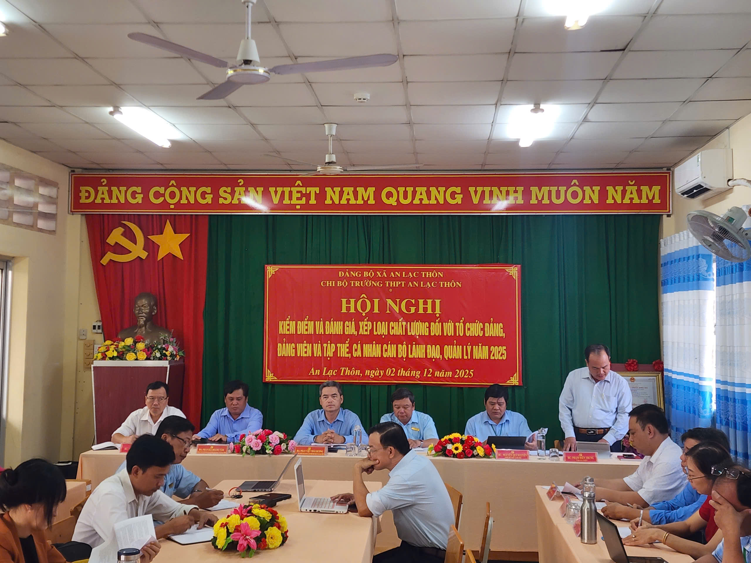 Thực hiện Kế hoạch số 07-KH/ĐU của Ban Thường vụ Đảng ủy xã An Lạc Thôn, ngày 02/12/2025, Chi bộ trường THPT An Lạc Thôn đã long trọng tổ chức Hội nghị kiểm điểm, đánh giá và xếp loại chất lượng tổ chức đảng, đảng viên, tập thể và cá nhân cán bộ lãnh đạo, quản lý năm 2025.