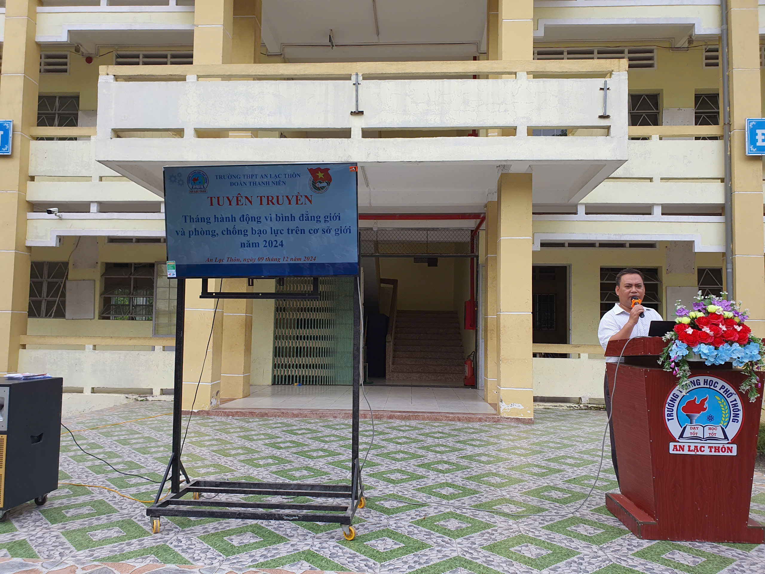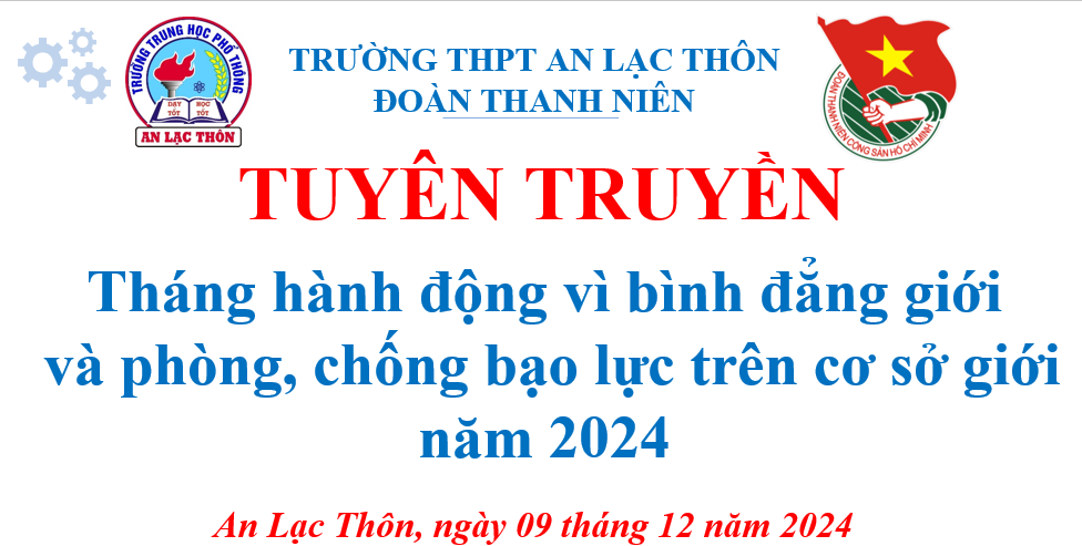 Sáng ngày 09/12/2024, Đoàn trường THPT An Lạc Thôn tổ chức Tuyên truyền "Tháng hành động vì bình đẳng giới  và phòng, chống bạo lực trên cơ sở giới năm 2024".