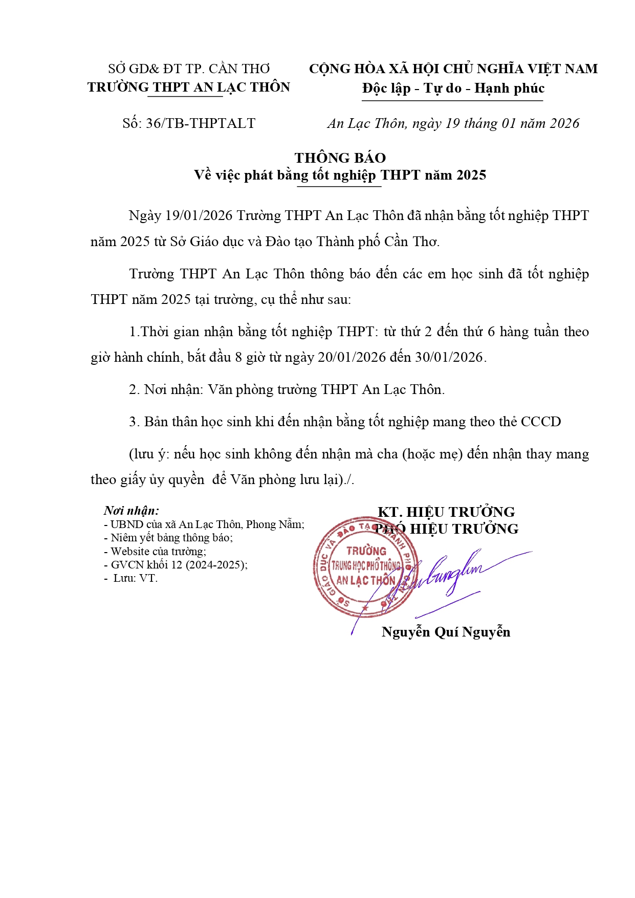 Thông báo nhận bằng Tốt nghiệp năm 2025