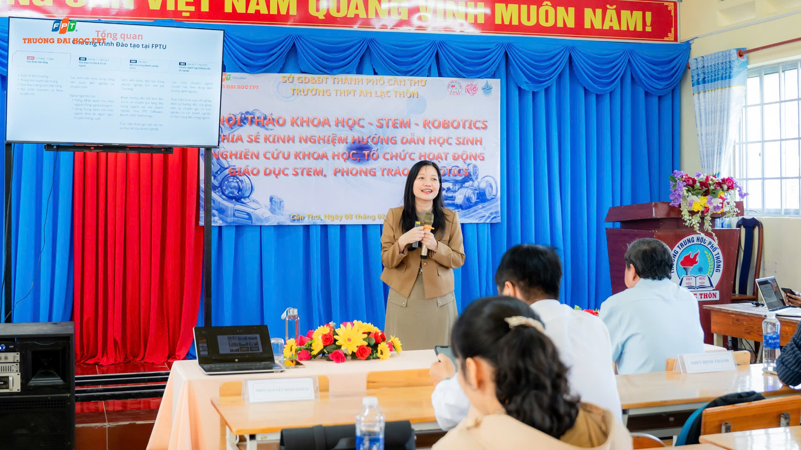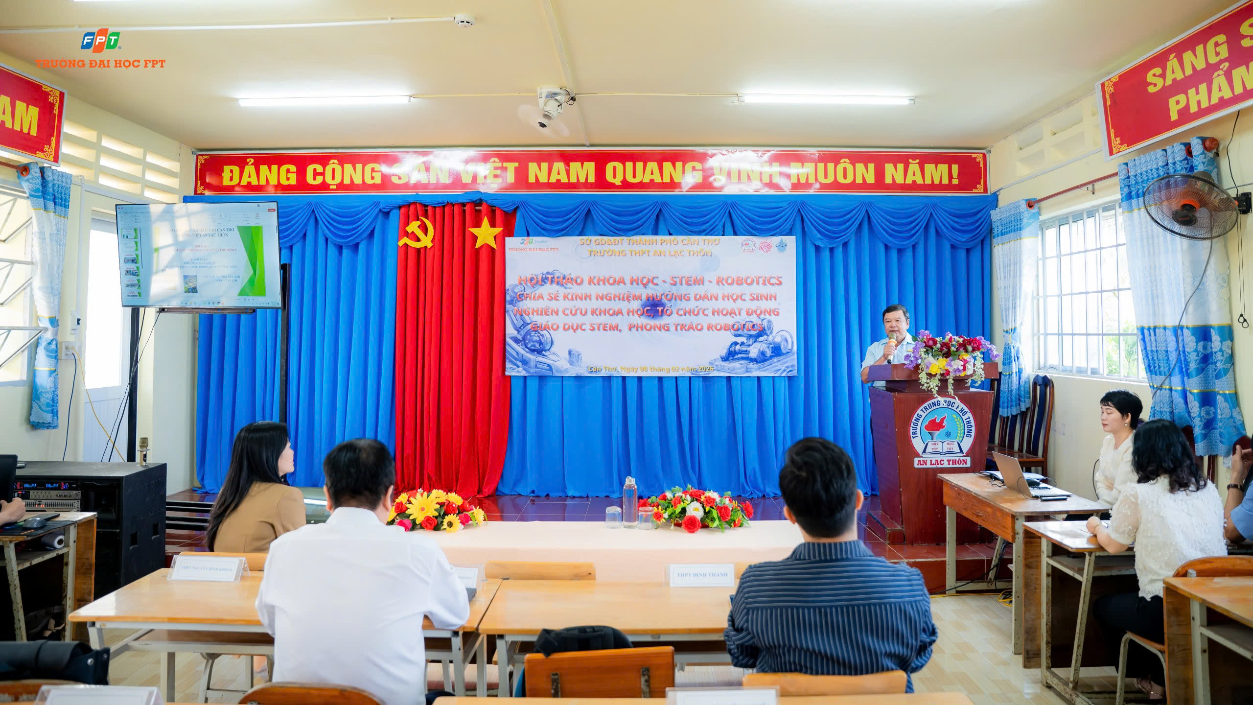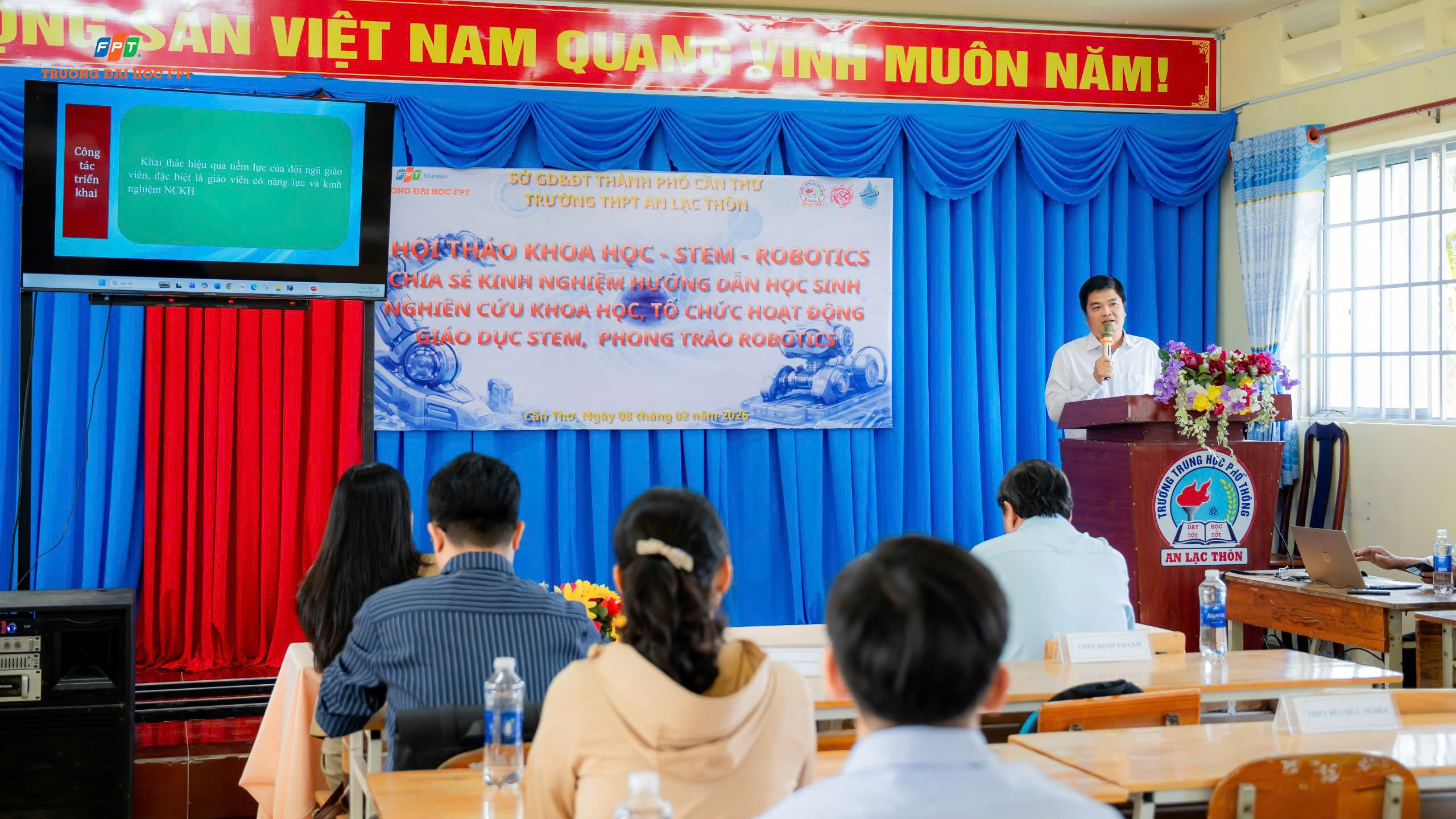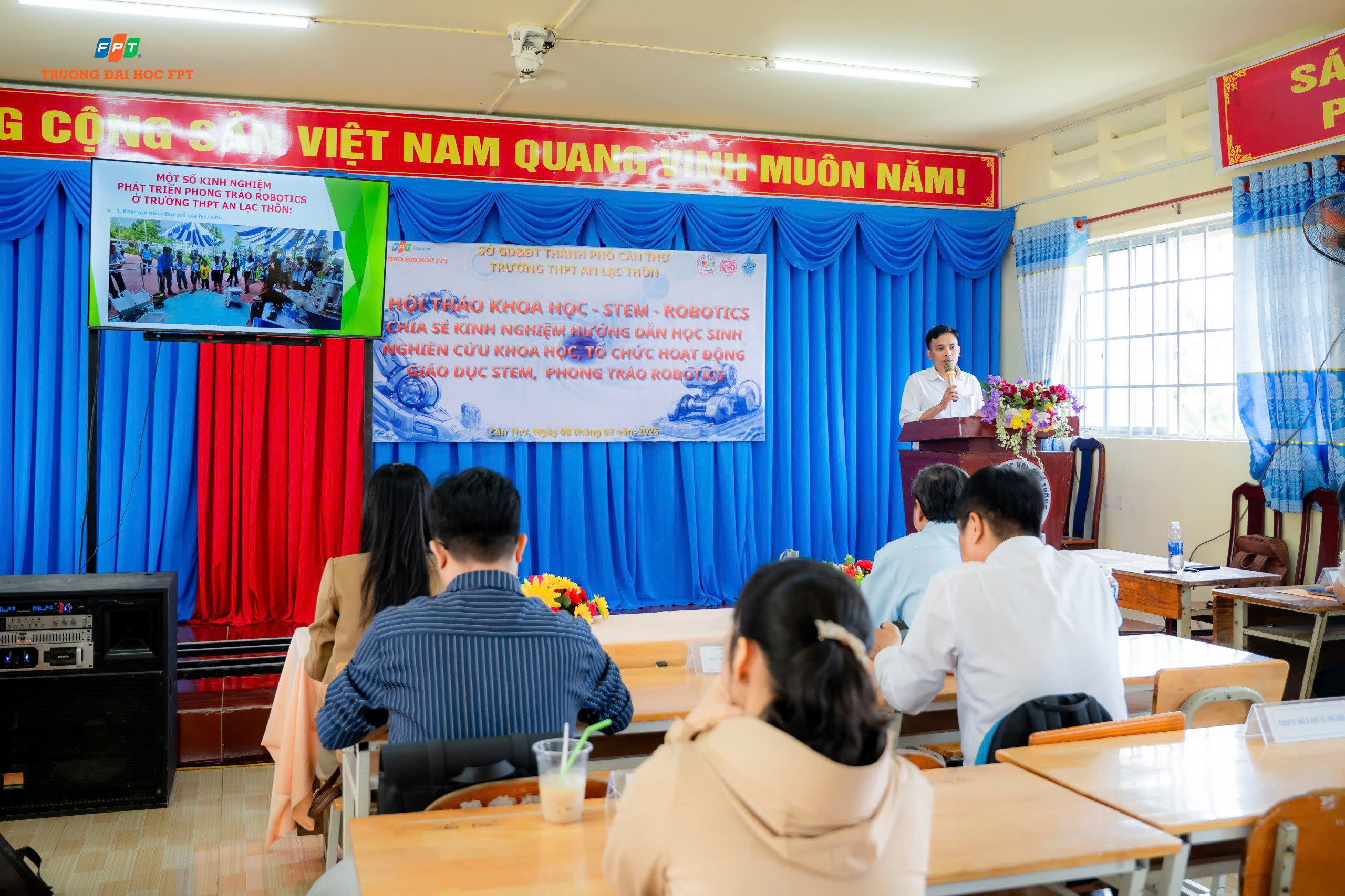 Sáng ngày 07/02/2026, Trường THPT An Lạc Thôn tổ chức Hội thảo Nghiên cứu khoa học – Giáo dục STEM – Robotics cấp thành phố với chủ đề “Chia sẻ kinh nghiệm hướng dẫn học sinh nghiên cứu khoa học, tổ chức hoạt động giáo dục STEM và phong trào Robotics”.