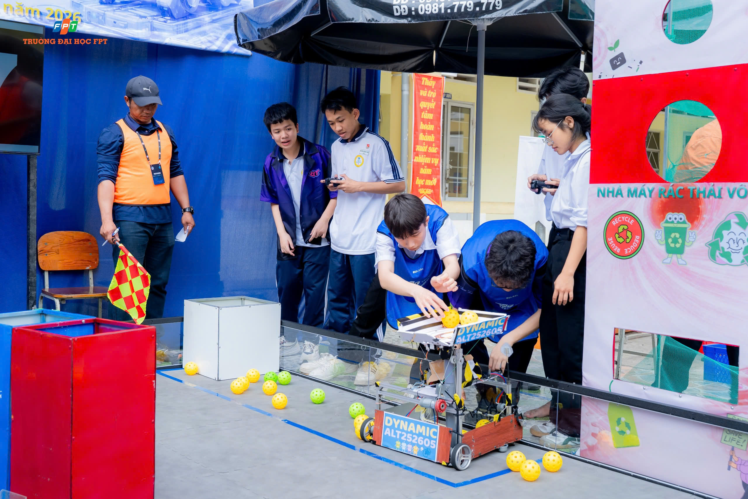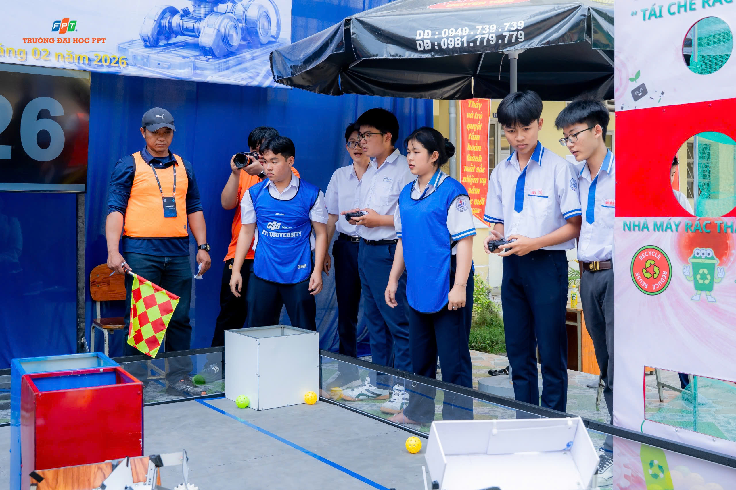 Không chỉ dừng lại ở thảo luận học thuật, chương trình còn mang đến bầu không khí tranh tài đầy hứng khởi với Cuộc thi Robot chủ đề “ROBOTCON – Tái chế rác thải”. Trên sân đấu, những cỗ máy nhỏ gọn do chính học sinh thiết kế đã vận hành linh hoạt, thực hiện nhiệm vụ thu gom và phân loại rác – một mô phỏng sinh động cho giải pháp công nghệ hướng đến bảo vệ môi trường.