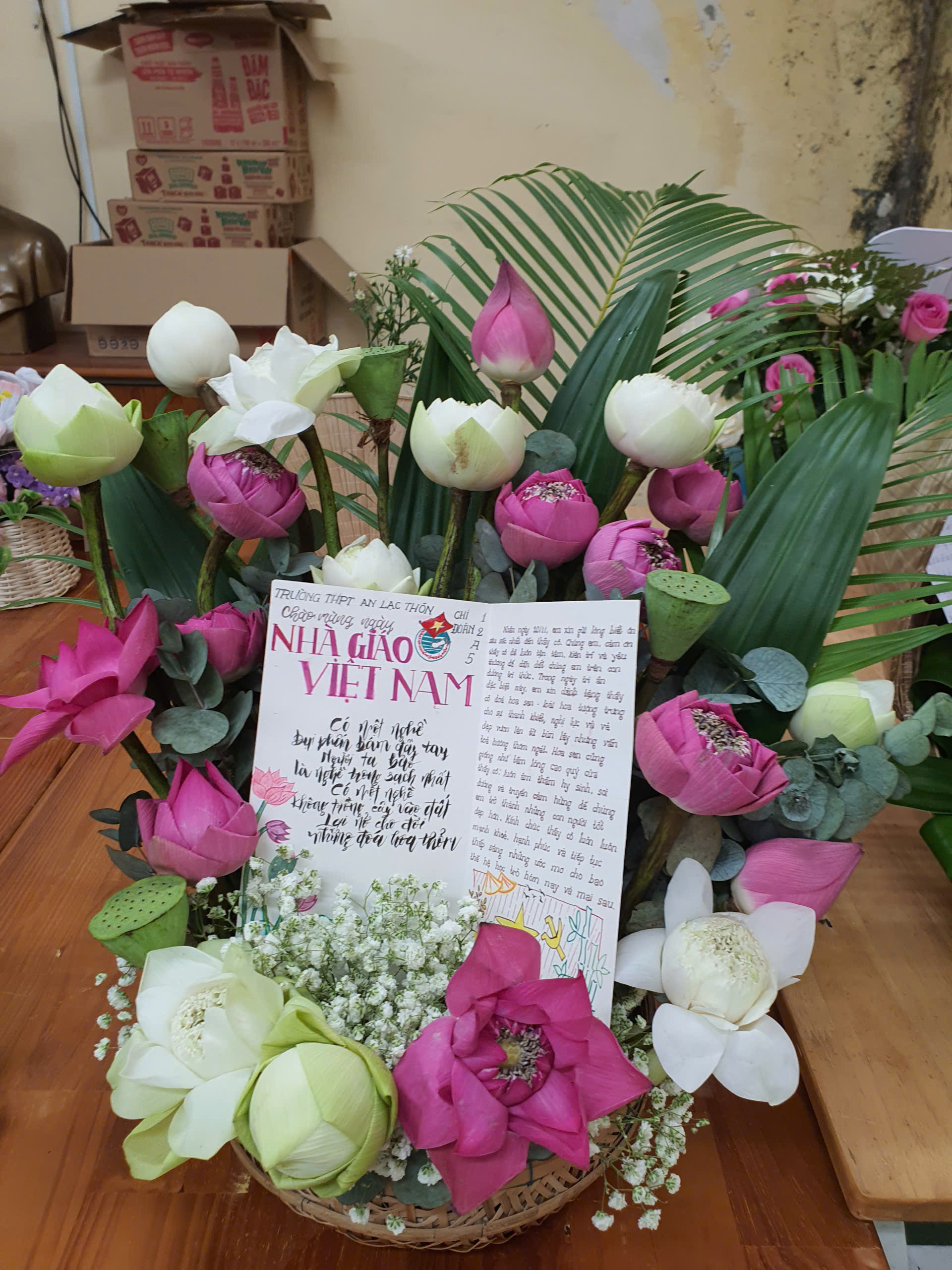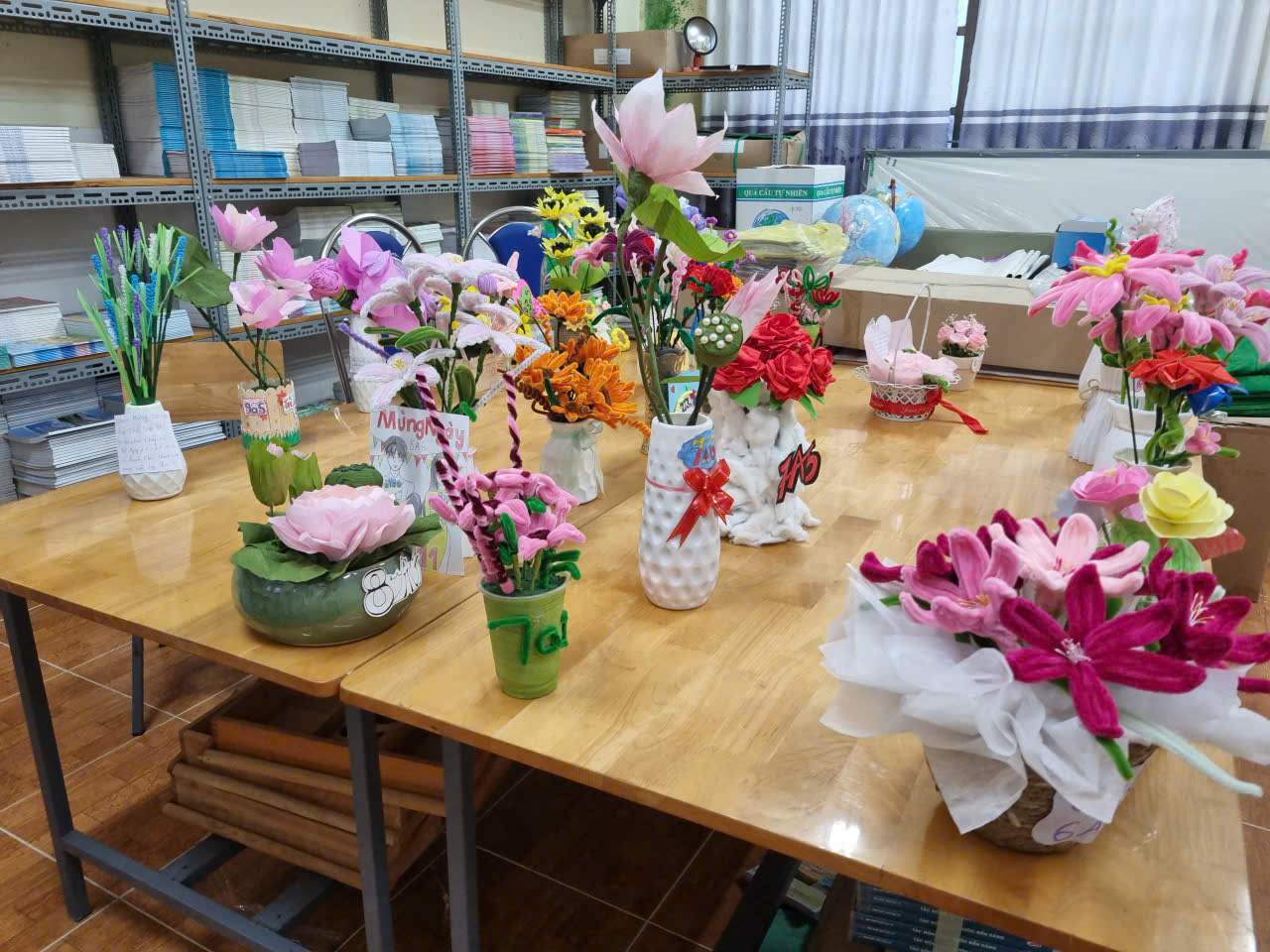 Các đội thi đã mang đến nhiều tác phẩm đầy màu sắc, ý tưởng sáng tạo và thông điệp ý nghĩa. Mỗi lẵng hoa, mỗi bình hoa đều là những lời chúc tốt đẹp, sự tri ân chân thành gửi đến thầy cô giáo – những người tận tụy dìu dắt các em trên con đường học tập và trưởng thành.