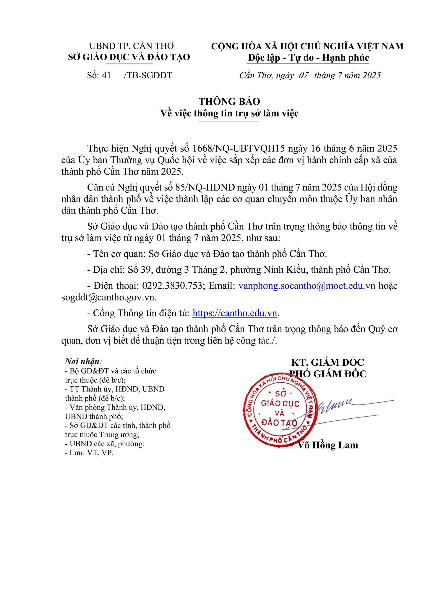 Thông báo Về việc thông tin trụ sở làm việc